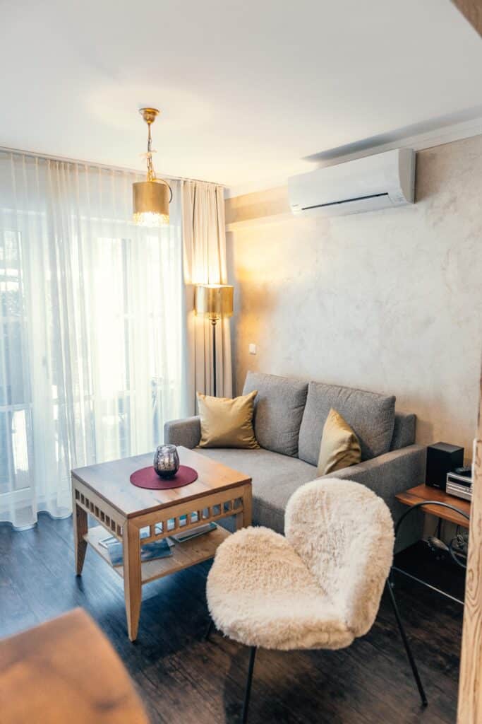 Die Trendsetter mit großer Dusche, Doppelwaschtisch und begehbarem Kleiderschrank. Weitläufige Terrasse mit Burgblick und Nachmittagssonne. Ein kleines Refugium!